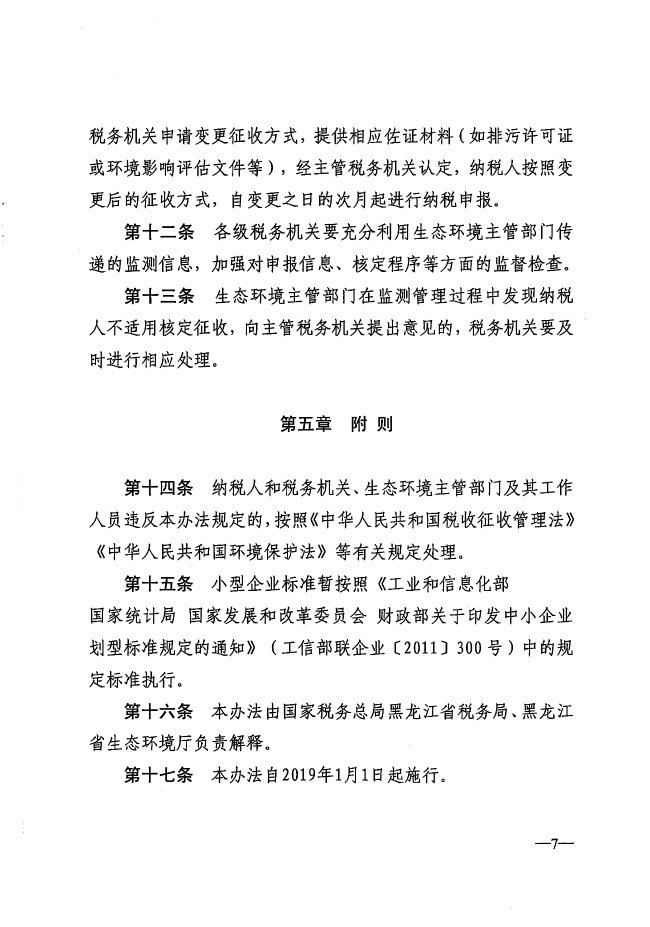 国家税务总局黑龙江省税务局 黑龙江省生态环境厅公告 2019年第5号