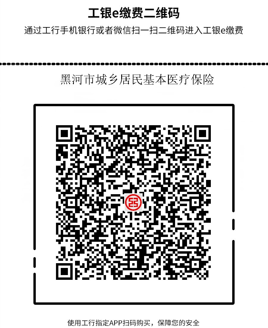 如已开通工行手机银行用微信扫描“黑河市城乡居民基本医疗保险”二维码,即可在“工银e缴费”页面,按屏幕提示输入身份证号及姓名→点击“下一步”→对系统返回的信息确认无误后,按屏幕提示依次输入手机号和短信验证码即可完成上线缴费。