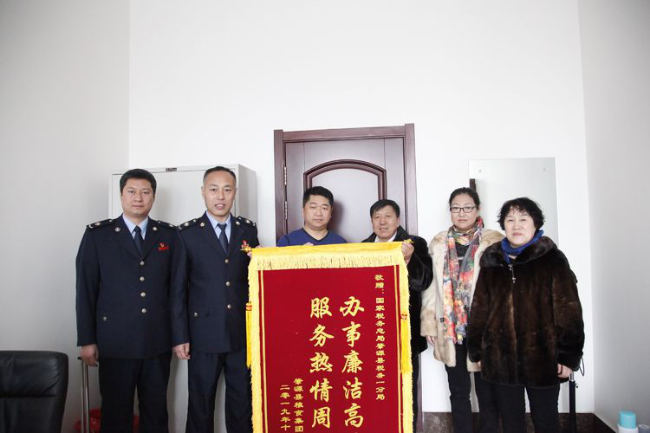 “北风其凉,雨雪其雱。”今天上午,几位纳税人迎着凛冽的寒风来到肇源县税务局,将一面镌刻“办事廉洁高效 服务热情周到”的锦旗递交至税务干部手中,以此感谢我局第一税务分局一直以来的高效贴心服务。元旦前夕,这份特殊的礼物让县局机关大楼温情四溢。