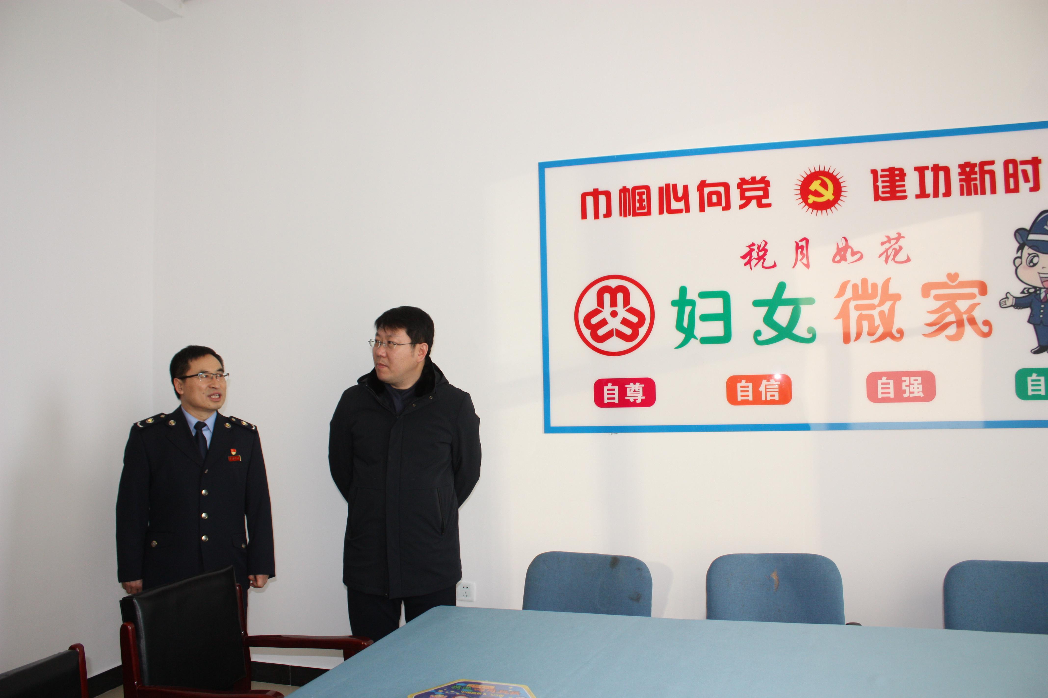 12月18日上午,克东县县委副书记许晓飞率领克东县县总工会、县妇联、团县委、县残联等部门领导一行10余人,到克东县税务局调研指导党建、工会及群团工作。许书记等人在克东县税务局党委书记、局长王玉明及班子成员的陪同下,先后参观了该局的会议室、图书室、党员活动室、妇女微家、税收文化走廊,参观结束后,在会议室与大家进行了座谈。