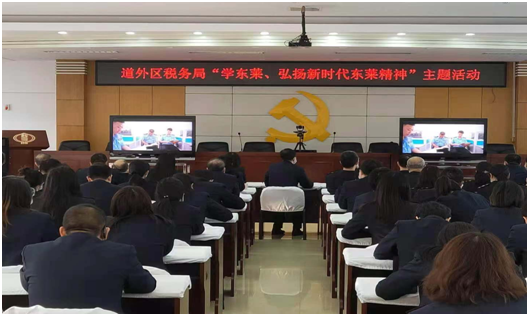 近期,道外区局分批组织干部职工观看了《人民的东莱 永远的东莱》宣传片,掀起学习“东莱精神”的热潮。全体干部结合岗位实际,对照东莱榜样,谈体会、讲心得、找差距、补短板。大家纷纷表示,要以东莱派出所为榜样,恪尽职守、勤勉工作、主动担当,将东莱精神转化为提升服务的内在动力,落实落细各项服务举措,不断提升纳税人、缴费人满意度和获得感。要继续鼓足干劲,以百米冲刺、决战决胜的姿态狠抓落实,确保各项工作任务圆满收官,为明年各项工作开好局、起好步奠定良好基础。