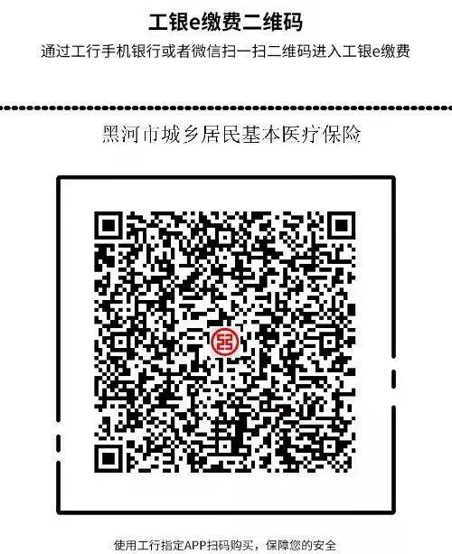 已开通工行手机银行的客户登录工行手机银行APP→选择“e缴费”→缴费项目内选择“全部”→查找“保险保障”下的“社会保险”→选择“黑河市城乡居民基本医疗保险”→按屏幕提示输入身份证号、姓名→选择“下一步”→对系统返回的缴费信息确认无误后,按屏幕提示完成。