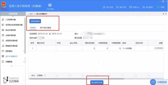 03点击【获取结报单】,等待数据下载完成后进行核对。