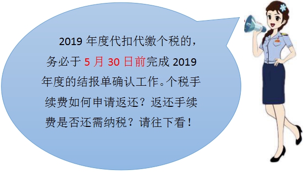根据《国家税务总局关于发布《个人所得税扣缴申报管理办法(试行)》的公告》(国家税务总局公告2018年第61号)第十七条规定,对扣缴义务人按照规定扣缴的税款,按年付给百分之二的手续费。不包括税务机关、司法机关等查补或者责令补扣的税款。扣缴义务人领取的扣缴手续费可用于提升办税能力、奖励办税人员。
