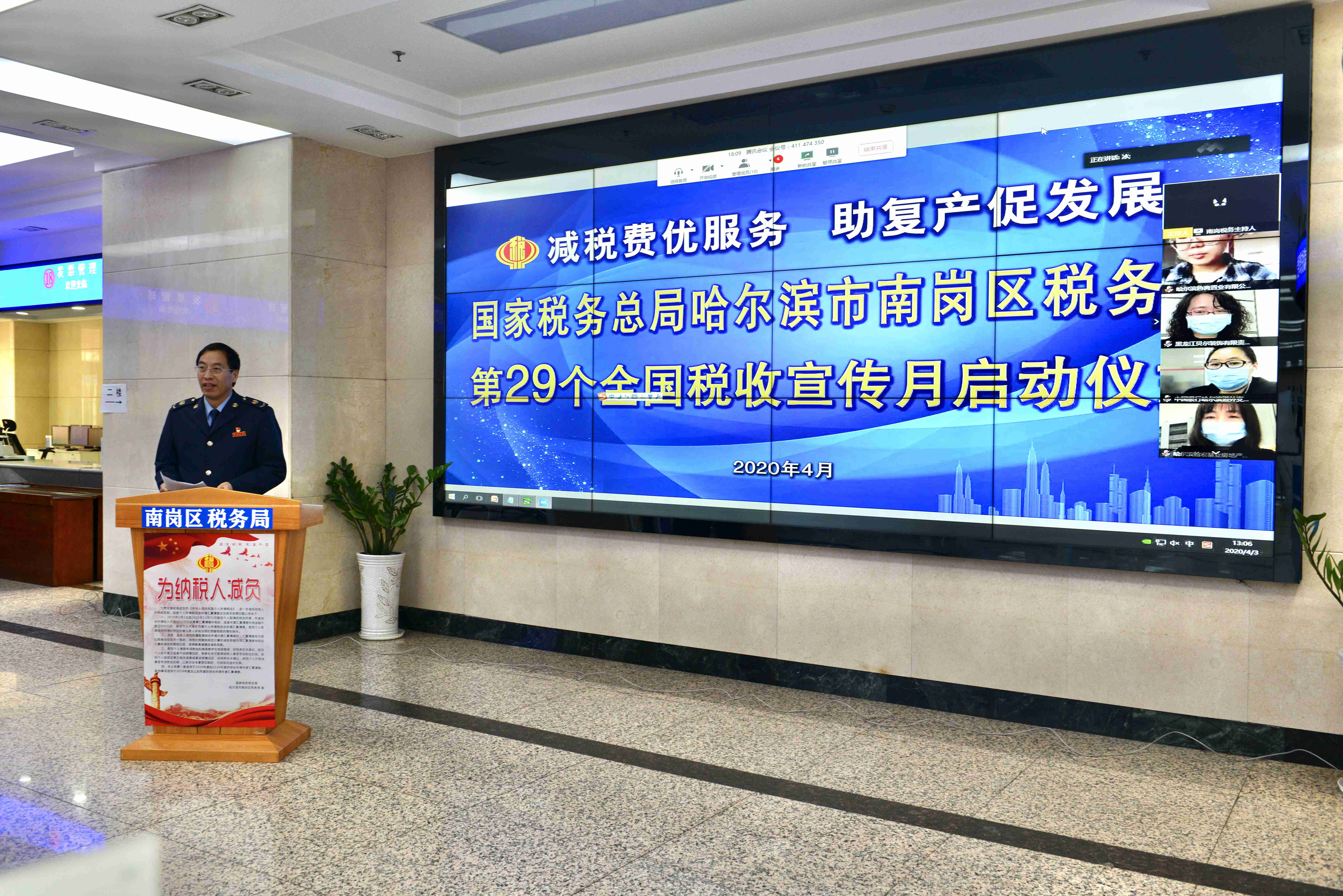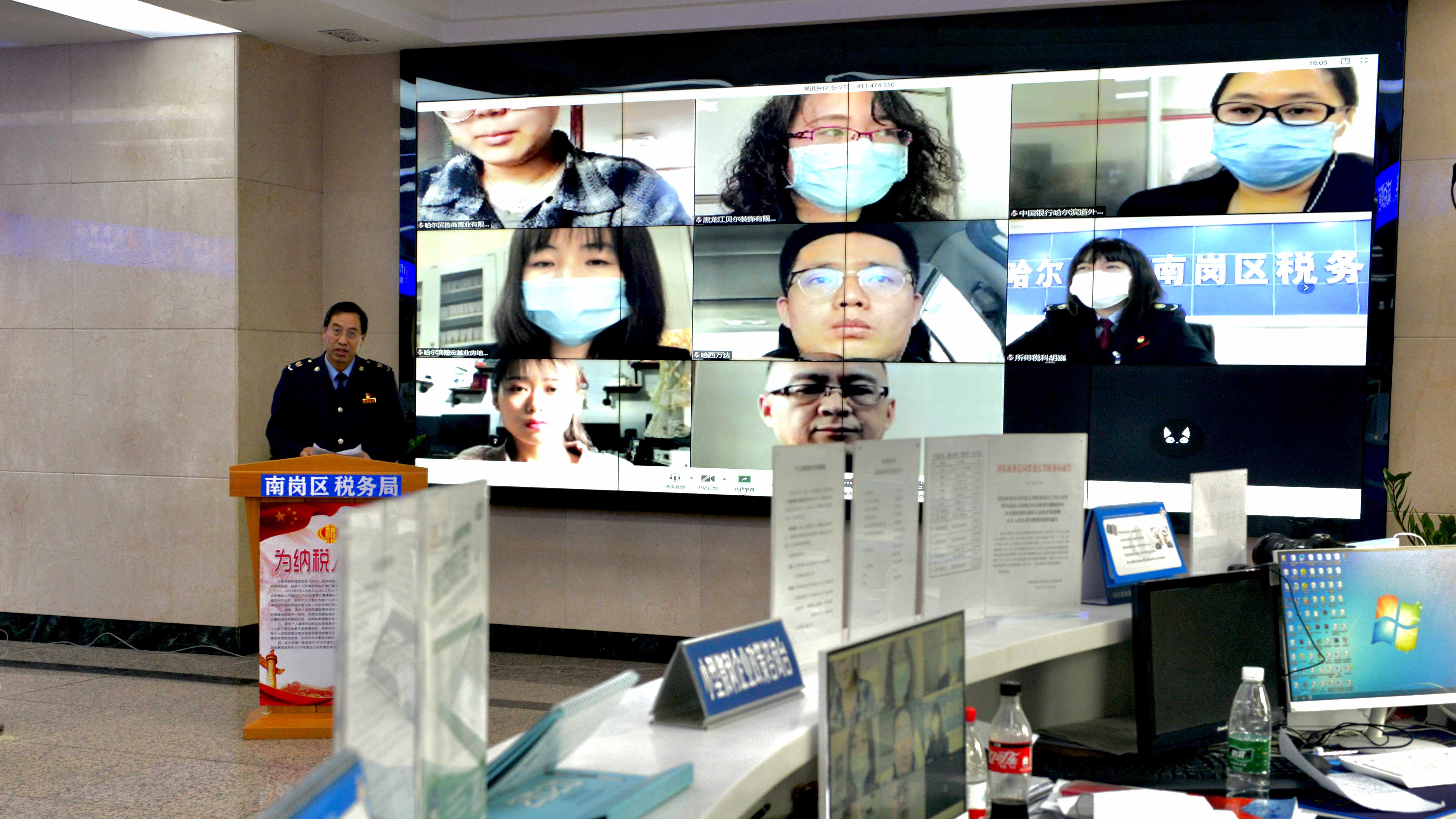 在抗击疫情的特殊时期,国家税务总局哈尔滨市南岗区税务局举办了一场特殊的税收宣传月启动仪式,借助远程视频会议的模式组织税务干部和辖区部分企业同步参与。以此正式拉开了南岗区税务局以“减税费优服务 助复产促发展”为主题的税收宣传月活动的序幕。