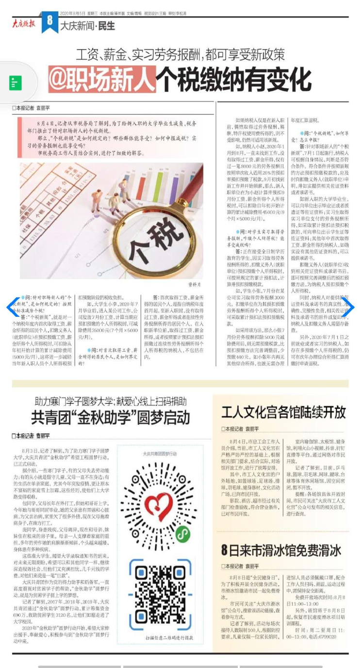 8月4日,记者从市税务局了解到,为了给新入职的大学毕业生减负,税务部门推出了针对职场新人的个税新规。