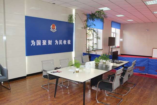 区域五:观影区。观影区是可以为纳税人和职工放映税收宣传影片的公共场所,观众在里面需要遵守个人行为规范。观影区设有1个大屏幕、1张台桌、10把座椅,音响系统采用高质量音箱,使观众具有身临其境的观影效果。观影区既可以播放经典影片,又可以宣传税收知识,更加方便纳税人和职工学习娱乐。观影区还可以变为党员活动的新媒体主阵地,使“三会一课”、主题党日、青年理论学习小组等学习活动形式更加丰富,充分实现党员活动阵地规范化建设与职工之家建设相结合,实现优势互补,党员和职工活动阵地共建共管共享。