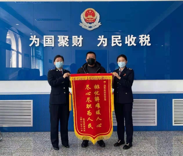 一面锦旗,一句感谢,承载着纳税人对梨树区税务局优化纳税服务的高度肯定,饱含着纳税人对税务干部切实为人民服务的真心赞誉,是梨树区税务局深入推行“我为纳税人、缴费人办实事”的生动写照。纳税服务优化没有终点,便民办税春风永远在路上,梨树区税务局全体税务干部将坚持以纳税人需求为导向,严格遵守服务规范,发挥职能真帮实助,为梨树区经济发展作出新的贡献。