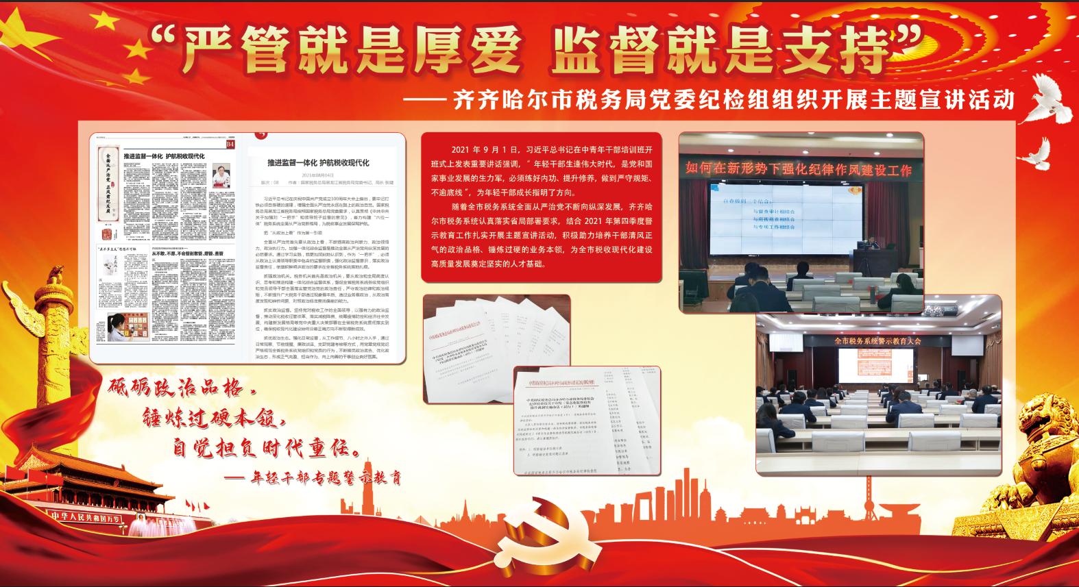 为加强新时代干部监督工作、推动全面从严治党向纵深发展,齐齐哈尔市税务局党委纪检组按照省局纪检组工作要求,精细谋划、抢先抓早,迅速在全市税务局系统范围内组织开展党风廉政建设和反腐败工作主题宣讲活动。