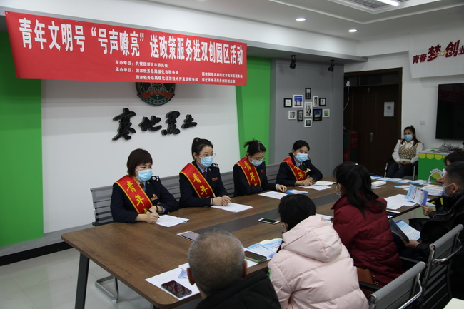为深入学习贯彻习近平总书记在中央人才工作会议上的重要讲话精神,擦亮青年文明号品牌,持续推动“我为群众办实事”实践活动贯穿党史学习教育全过程,为我市创业青年、小微企业等群体提供更为精准、便捷的服务,按照团省委和省税务局统一部署,12月8日上午,绥化市税务局联合团市委,在绥化市电子商务创新创业园开展了青年文明号“号声嘹亮”送政策服务进双创园区活动。
