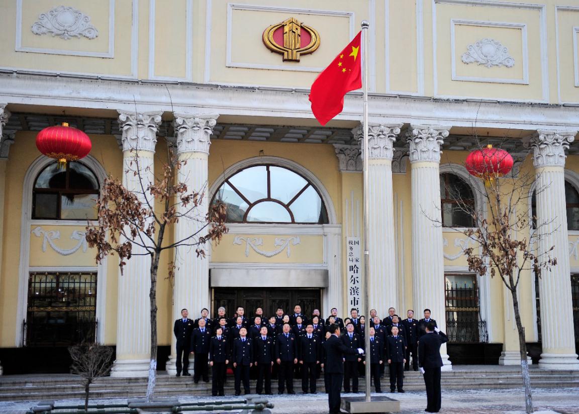 在哈尔滨市税务局办公楼前,工作人员正在紧张有序的检查升国旗仪式的每一个细节。上午9时,在凛冽的寒风中,升旗手们护卫着鲜艳的五星红旗入场,参加升旗仪式的干部们在局党委的带领下,身着税装、列队整齐。伴随着雄壮的《义勇军进行曲》,五星红旗冉冉升起,干部们集体行注目礼高唱国歌,向伟大祖国致以诚挚祝福。庄严肃穆的气氛不仅点燃了每一名干部的斗志和激情,也感染了路过的市民驻足挺立参加这场意义重大的仪式。仪式后,干部们纷纷表示,此次活动既是一次深刻的爱国主义教育,也是摆脱“节后综合征”、开启“收心模式”、提升工作“精气神”的一剂良药,今后将以更加饱满的热情投入到工作中,为税收事业发展贡献更大力量。