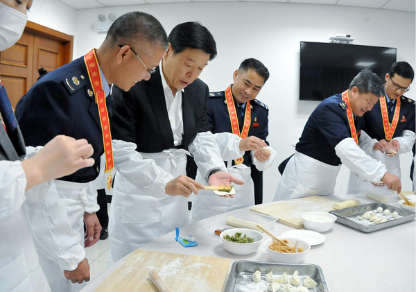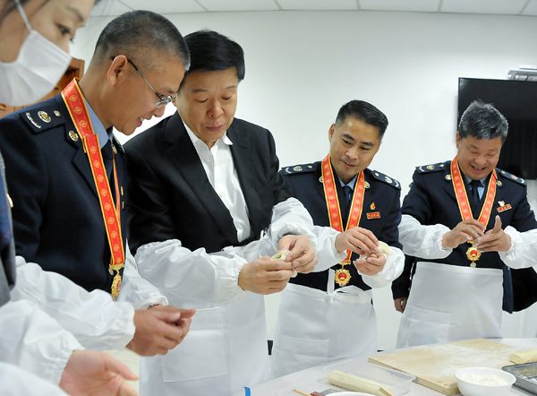 “大家都动起手来!”“包饺子皮,来回捏三趟。”“大家相互配合,出活儿很快。”总局机关食堂里,大家一边聊着家乡的民俗,一边包饺子、搓汤圆,现场气氛热烈、暖意融融,不时传来爽朗的笑声。