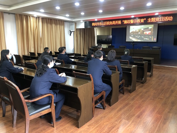 为深入贯彻落实全面从严治党要求,持续推动党风廉政建设和反腐败斗争走向深入,鹤岗市东山区税务局坚持从教育抓起,开展“廉政警示教育”主题党日活动,不断夯实党员干部廉洁从政的思想道德基础,时刻固守廉洁自律底线。