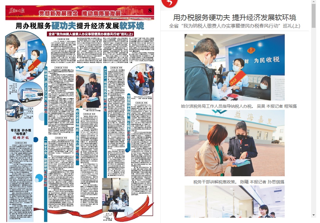 今年的“我为纳税人缴费人办实事暨便民办税春风行动”中,哈尔滨市税务局将从纳税人最关心关注的事情抓起,进一步简并税费申报、精简证明资料,拓展网上办税、非接触办税范围,提速注销、退税办理,积极推进“首违不罚”和“柔性执法”,健全完善“哈税通”税费服务品牌建设,更好地服务纳税人缴费人,优化税收营商环境。