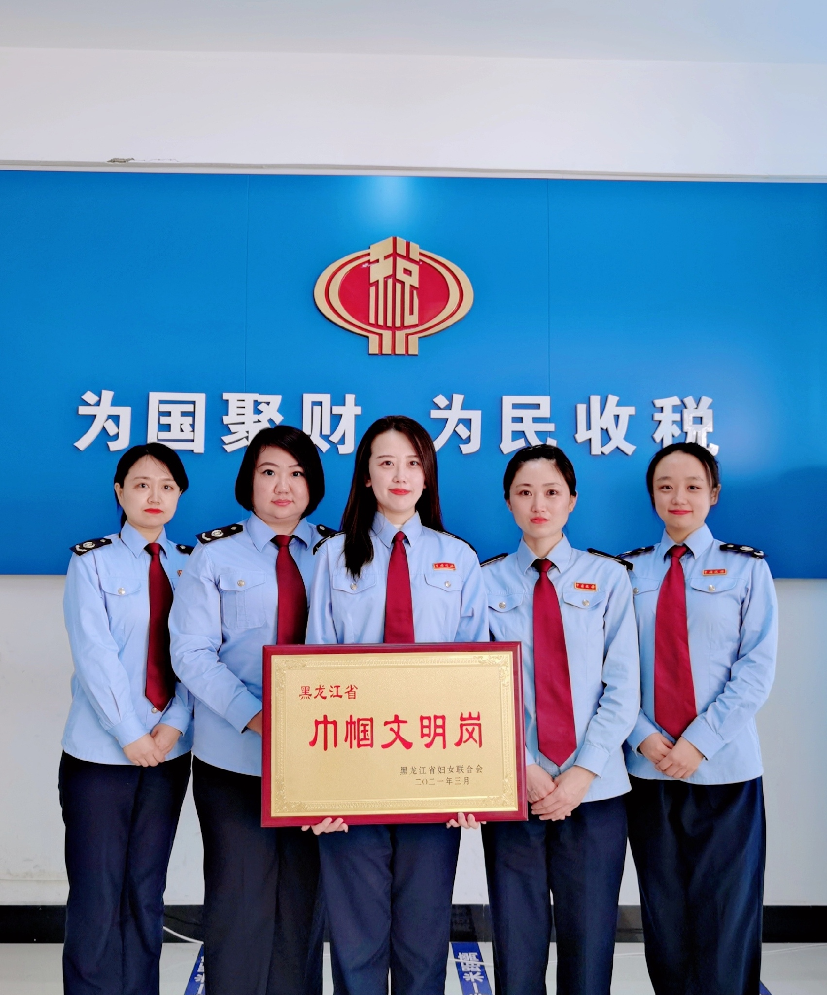 绥化市税务局第二税务分局办税服务厅,一个由5名女税务干部组成的集体,今年被黑龙江省妇联评为巾帼文明岗。她们担负着绥化市区所有车辆和各县(市)的特种车辆的车辆购置税征收工作,以优质服务,公正执法为己任,忠实履行“为国聚财,为民收税”的神圣职责,用扎实的业绩,展现了当代女税官的飒爽英姿和靓丽风采。她们是爱岗敬业的奉献者。一年260个工作日,天天都是征期,日接待纳税人150多位。长期繁重且较大的工作量使她们都患上了严重的颈椎病,有人甚至工作时晕倒在岗位上,但她们从没喊过辛苦,始终兢兢业业,坚守岗位,一干就是6、7年,有的达到10几年,用满腔热血实现着人生价值。她们是柔情满怀的服务者。工作中时刻牢记全心全意为纳税人服务的宗旨,对内整合窗口、改善设施、优化流程、简化手续方便纳税人,对外施行“六零承诺”、“一机双屏”、“提醒服务”、“延时服务”体谅纳税人。用优质高效的服务赢得了广大纳税人的一致好评。她们是清正廉洁的执法者。始终把廉洁自律装在心中,落实在行动上,经常结合实际从车辆信息采集,计税价格核定,减免退税流程,滞纳金加收等关键环节入手排查廉政风险点,检视是否存在问题,时刻警示自己,不越雷池一步。从来不向纳税人伸手,接受纳税人吃请。从没发生过票证、资金差错和违法违纪问题。以良好的廉洁形象受到了社会的广泛赞誉。