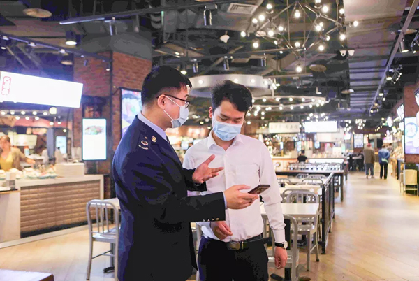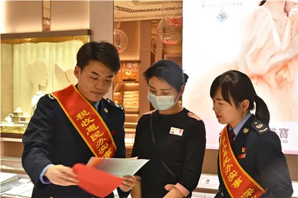 在重庆,国家税务总局重庆市渝中区税务局组建“党员+骨干”服务队,实地走访龙湖时代天街商圈等20余个店面,为商家解答涉税难题。