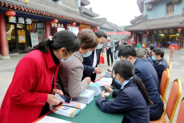 在湖北,国家税务总局十堰市武当山旅游经济特区税务局借力当地“汉潮非遗庙会”,联合中国建设银行组成宣传小分队,开展“税收惠民办实事银税互动助企业”宣传活动。 |