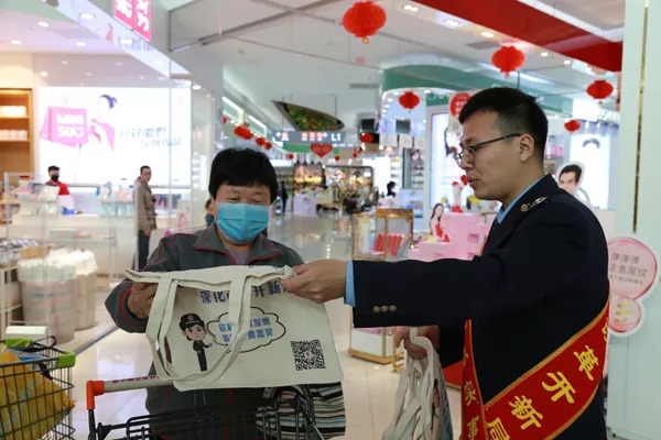 在山东,国家税务总局庆云县税务局志愿者来到当地购物广场,围绕发票摇奖主题,为过往消费者发放主题购物袋,营造良好的税收秩序。