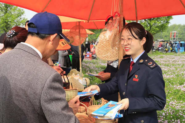在安徽,国家税务总局南陵县税务局来到紫云英小镇,将税宣展台摆进花海,为南来北往的游客宣传解读最新的税费优惠政策。