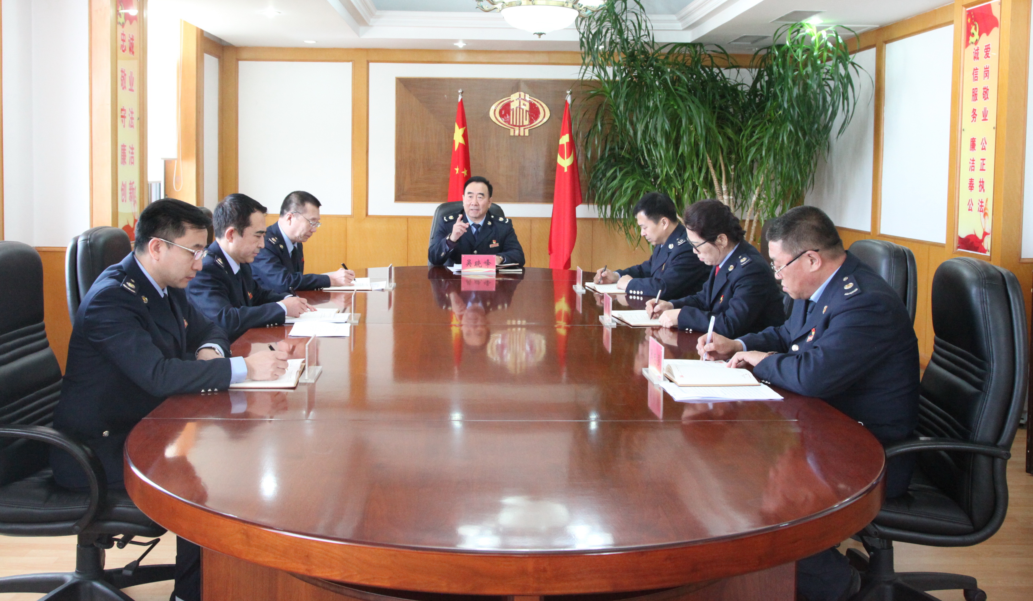 主要领导身体力行做表率。一场硬仗接着一场硬仗打,一个环节扣着一个环节抓,短短10个月时间,一支听党指挥、敢打硬仗、善打胜仗的税务铁军淬炼成形,这是绥化局党委向省局党委和绥化干部交出的履职“答卷”。“加强党的领导、提升政治站位,高度认真负责、积极宣传政策,增强担当意识、落实包保责任,树牢党性观念、坚持公平公正,严肃纪律规矩、营造良好环境”是绥化局主要领导的工作要求也是自律标准。执行中,晓峰同志既善于在不利局面中,找准方向,稳把舵盘。例如,面对绥化局信访“老大难”,发挥党建在思想政治工作中的强大力量,主动接待退役士兵和长期上访人员,妥善化解矛盾纠纷,全系统信访举报量同比大幅下降。再如,面对组织收入巨大压力,坚定信心,科学谋划,亲自研究,协调各方,到任首月实现税收收入“由负转正”,一举扭转了上半年税收持续下滑的不利局面,并连续6个月实现了正增长,下半年同比增长20%,增幅全省第一,带领绥化局打赢了这场组织收入“攻坚战”。又勤于在吃力啃劲时,身先士卒,树立标杆。疫情期间,晓峰同志带头全程值守,领跑抗疫“第一棒”,主动要求安排在大年三十和初一全程值守,为全局党员干部树立了榜样。在干部无法集中到岗办公情况下,带领有关人员“封闭式”驻守市局机关40余天,最终夺取“双线作战双胜利”。还关心关爱干部职工,勇于担当,扶危解困。面对机构改革期间“正转副”去世干部家属工作调转难题,晓峰同志知难不避难,多次与市委主要领导沟通,说明情况,争取支持,最终实现了干部遗属编制由外县调入绥化市区,以实际行动赢得了广大税务干部及家属的钦佩。总局王军局长视频连线督导市局党委民主生活会时,用“虎将”形容晓峰同志抓班子带队伍雷厉风行。市委市政府领导用自身努力成效好,地方党政评价高,关键有个好班子,有个好“班长”评价绥化局党委。正是由于有一名合格的“班长”,在讲政治、勇担当、守规矩上作出表率,才使全市税务系统上下一心,朝着一个目标努力,才确保了底线任务一个不失、攻坚任务不打折扣、发展任务高效完成。