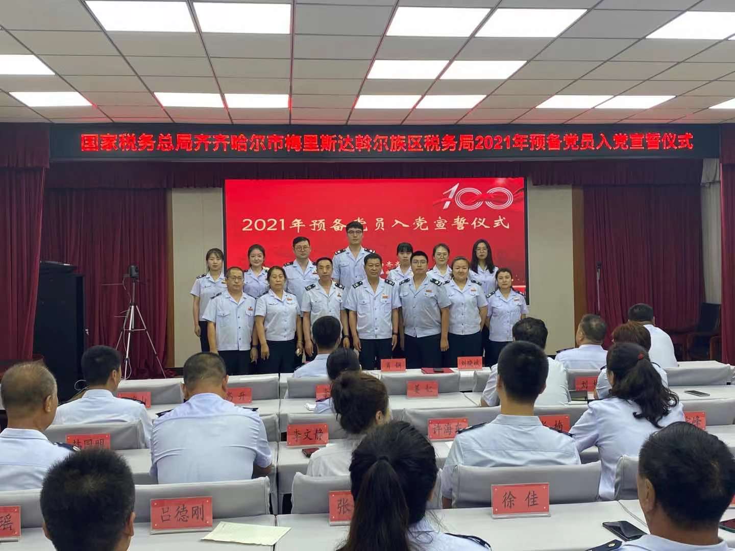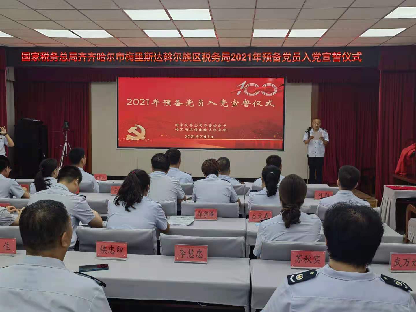 和平鸽飞翔在天安门广场,100响礼炮响彻云霄。7月1日,在举国欢庆、意义非凡的日子里,梅里斯区税务局举行了庆祝中国共产党成立100周年活动暨2021年预备党员入党宣誓仪式。