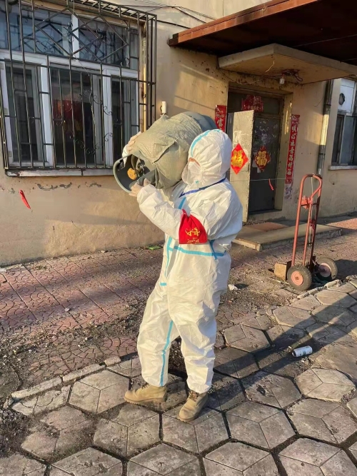 3月18日,拉林镇全域升级为高风险地区,支援队伍包保的拉林镇国税小区也出现了三例确诊,小区升级为封控区,因工作需要,四名干部对封闭进小区执行防控任务,立即加强管控政策,对小区单元进行封锁,每天进行消杀,在微信群中帮助居民购买药品和必备物资,让各位居民要保持警惕,不信谣、不传谣,相信政府,配合防疫工作。