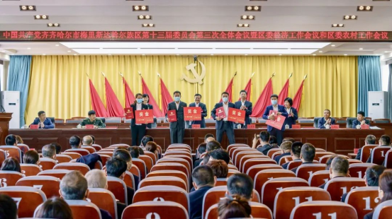 3月7日,中国共产党齐齐哈尔市梅里斯达斡尔族区第十三届委员会第三次全体会议暨区委经济工作会议和区委农村工作会议胜利召开。会上,区委、区政府对经济工作层面和农业工作层面表现突出的集体和个人进行了表彰,梅里斯区税务局荣获“服务项目建设优秀单位”称号。