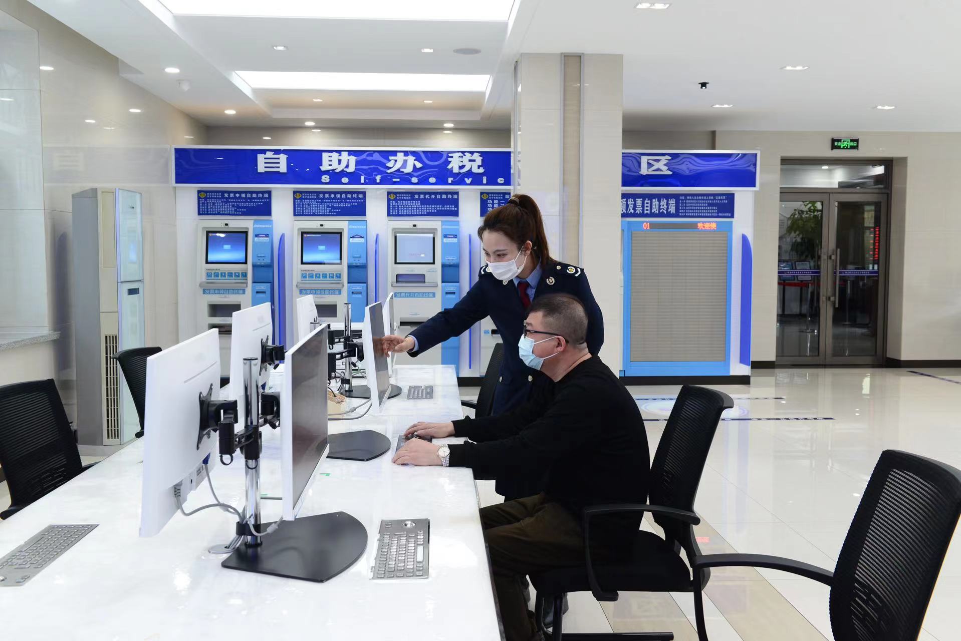 东宁市税务局办税服务厅干部指导纳税人办理申报
