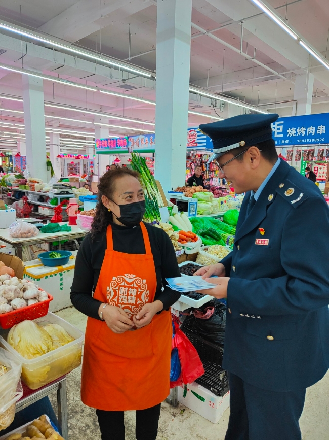税务干部向市场商贩送政策、讲税法