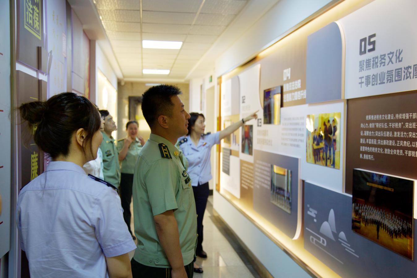支部联建活动中,双方介绍了党建工作情况,参观了道里区税务局党员活动中心,共同重温入党誓词。党员干部代表以“加强能力作风建设,开创强军兴税事业新局面”为题,就锻造高水平的干部队伍,为军税事业发展注入新活力进行交流研讨。