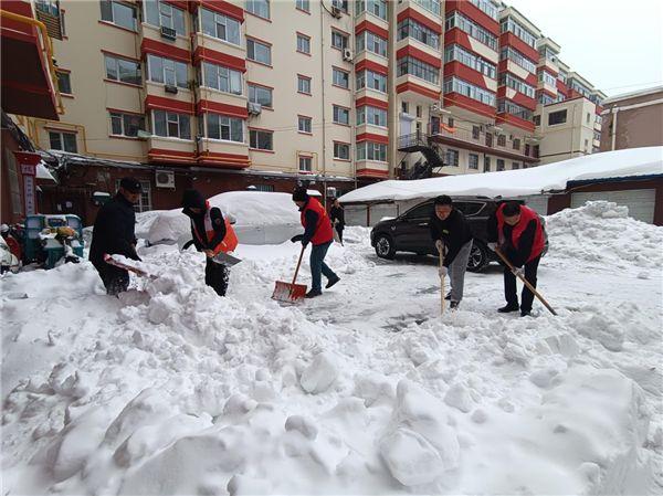 在清雪过程中,志愿者们分工有序、配合默契,在清扫积雪的同时提醒过往居民注意安全。经过两个小时的奋战,清除了五个包保小区主干道、居民活动区域积雪,救助被困车辆2辆,保证了居民的畅通出行。