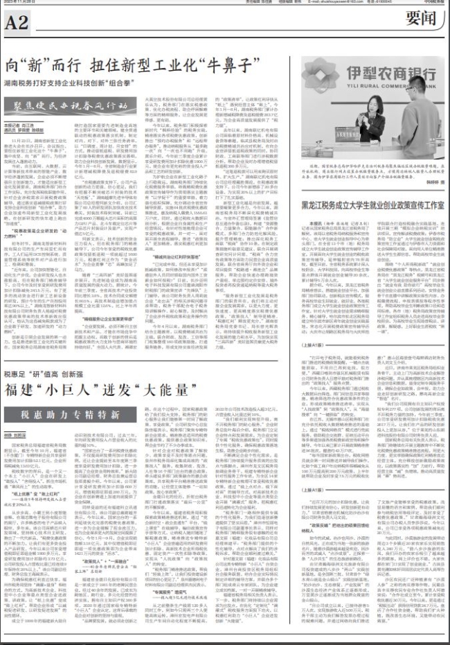 据介绍,今年以来,黑龙江省税务局精准普法,搭建就业创业平台,加强部门协同联动,创新税法宣传模式,服务高校毕业生好就业、就好业。各地税务部门成立大学生就业创业政策宣传工作室,针对大学生就业创业需求精细服务、精心辅导。哈尔滨市松北区税务局建立哈尔滨市新区青年就业创业实践基地,常态化开展税费政策宣传辅导活动;大庆市让胡路区税务局与大庆师范学院联合打造校税融合实践基地,连续开展三期“模拟企业纳税实训”培训项目,宣传解读税费政策;伊春市税务局“助立业”大学生就业创业税收政策宣传工作室通过与伊春市人力资源和社会保障局对接,面向用人单位精准推送大学生生源信息,帮助高校毕业生就业创业。