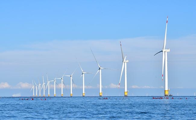 (2023年9月13日拍摄的辽宁大连庄河海上风电项目。新华社记者 杨青 摄)