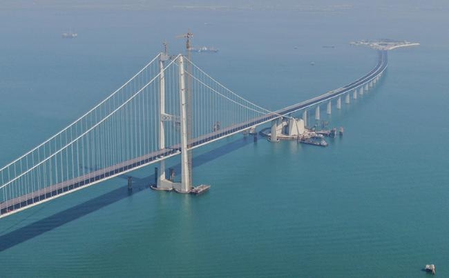 (2023年11月28日,粤港澳大湾区超级工程深中通道主线正式贯通,这是深中通道伶仃洋大桥东塔及西人工岛(无人机照片)。新华社记者 邓华 摄)