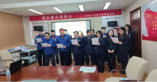 三是共同朗诵廉政誓言。“我宣誓:我们新时代的青年,不辜负党和人民的嘱托,立足岗位,砥砺奋进。我们有坚如磐石的理想信念,我们有赤诚为民的公仆情怀,我们有干事担事的过硬本领,我们有理想、敢担当、能吃苦、肯奋斗。我们时刻绷紧纪律规矩这根弦,强国有我,请党放心,请党放心,强国有我”,室内回荡的洪亮声音,句句入脑、入心。让同志们也更加懂得知敬畏、存戒惧、守底线,牢记初心使命、坚定理想信念、筑牢信仰之基。