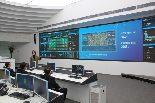 在平房区政府第二办公区智慧城市管理中心,平房区税务局班子成员及干部听取了大数据应用平台如何为政务赋能,以及OA协同办公、督办系统、智慧差旅、智慧防疫等应用系统助力政府高效、协同办公,了解了华为政务云和WeLink APP应用程序在智慧城市善政、惠民、兴业等方面发挥的作用。