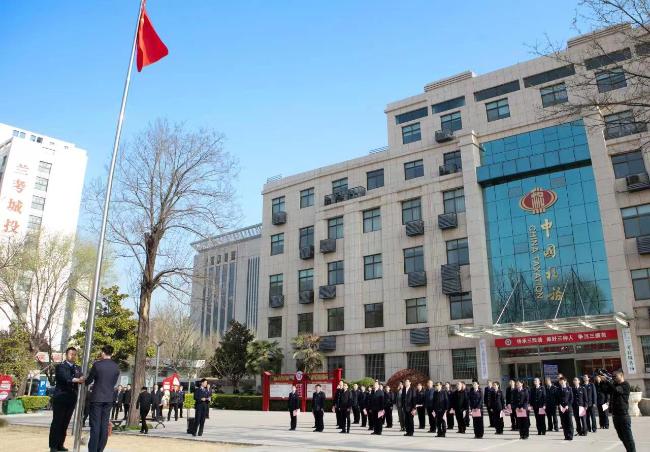 图为国家税务总局兰考县税务局升国旗仪式现场