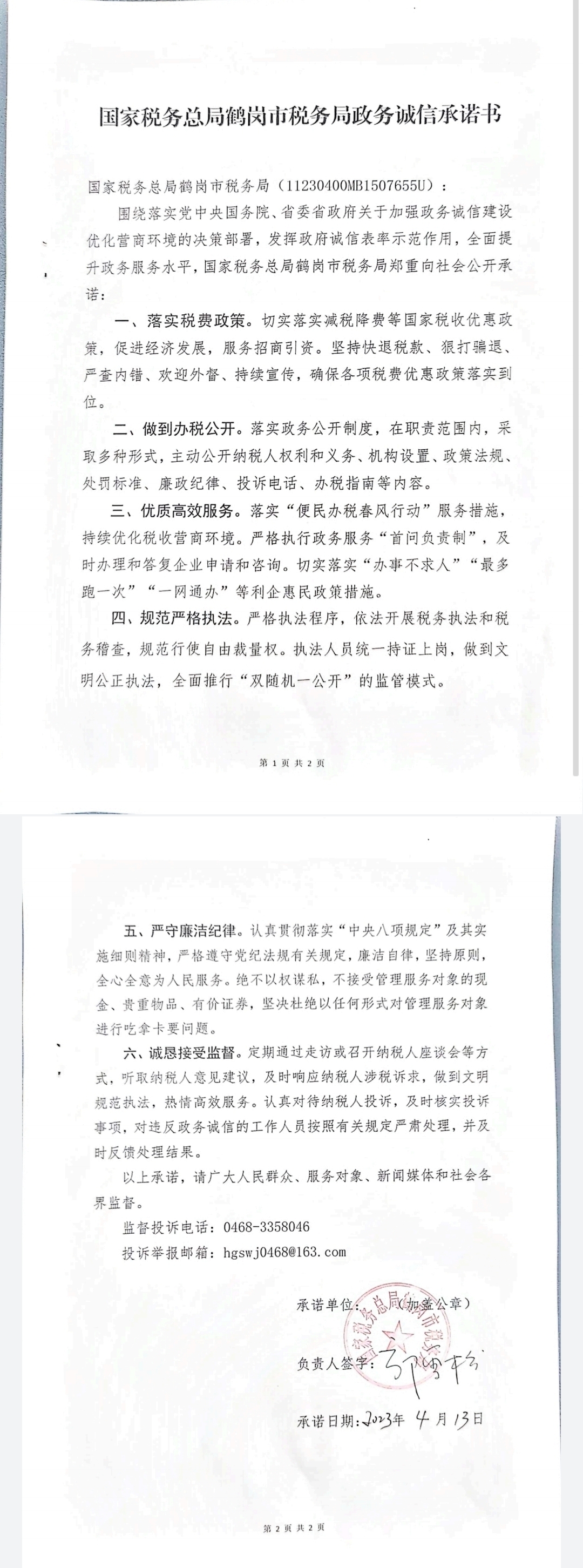 国家税务总局鹤岗市税务局政务诚信承诺书
