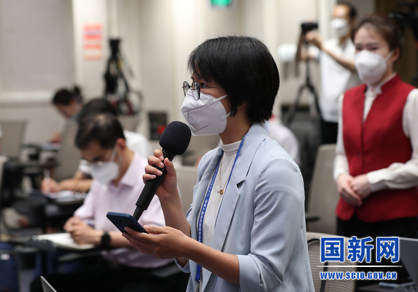 海报新闻记者提问(赵一帆 摄)