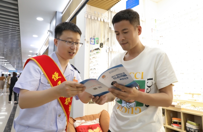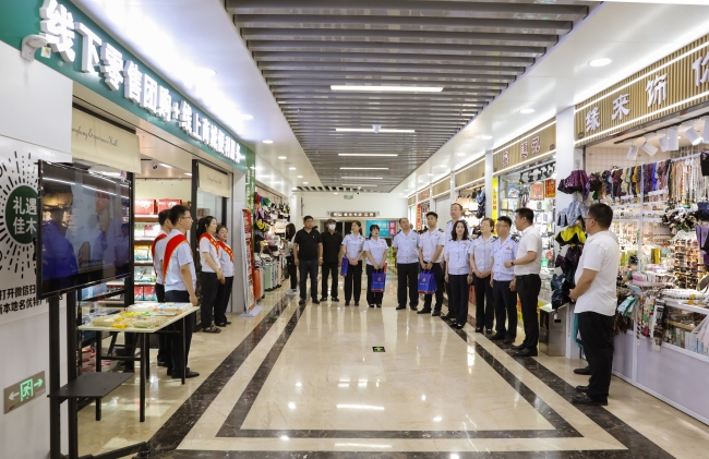 在活动中,市局机关第三党支部党员代表参观走访了市青年电商联合会设立在人防办地下商业街的“佳木斯农副产品体验馆”,向地下商业街沿街商户发放传单宣传讲解最新优惠政策,与驻地带货主播共同推介家乡农副产品。在交流中,机关第三党支部党员代表表示,这是第二次走进人防办地下商业街,走进农副产品体验馆,非常欣喜的看到馆内展出的家乡农副产品又海量“上新”,300余种“佳”乡特色农副产品将依托体验馆的“线上+线下”商城和主播带货走向全国各地,将为宣传推广佳木斯地方特色产品、推进乡村振兴和助力地方经济发展作出新的贡献。在了解到青年电商联合会成立至今已经实现利税5000余万元后,第三党支部党员代表纷纷表示,将以联学联建活动为契机,积极主动对接商会入驻企业问计问需,针对企业特点加大“量体裁衣”式的税费优惠政策宣传辅导力度,确保各项减、免、缓的税费政策红利精准“落袋”,不断加大帮扶力度,拓展企业成长空间,扶持企业健康快速发展,为助力家乡农副产品走向更加广阔市场贡献税务力量。