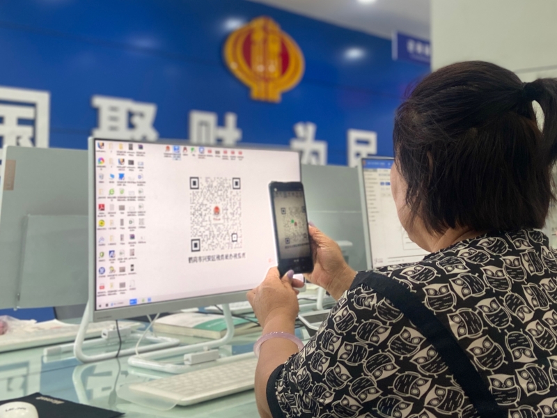 纳税人在自助办税区扫描办税指南二维码(央广网发 兴安区税务局供图)