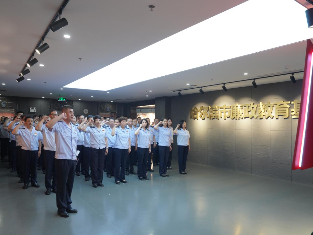 为进一步深入学习贯彻习近平新时代中国特色社会主义思想主题教育,深化税务干部队伍教育整顿效果,筑牢税务干部拒腐防变底线意识和严守纪律规矩红线意识,7月10日、7月14日,哈尔滨市税务局组织市局党委班子成员,机关副处级以上领导干部,派出机构“一把手”、纪检机构主要负责人,区(县)、市局“一把手”、部分班子成员、纪检组长到哈尔滨市廉政教育基地参观。省局党委副书记、市局党委书记刘晓辉同志参加警示教育活动。
