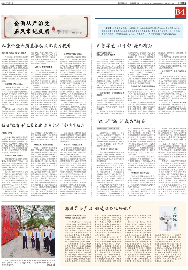 坚持担当作为一贯到底,提升斗争本领“求真效”。税务纪检工作政治性、政策性、专业性强,必须练就担当作为的硬脊梁、铁肩膀、真本事,增强勇于斗争的意识,提升敢于斗争的本领。针对干部知识短板和能力弱项,要完善人才库,既开展全覆盖、常态化、常规性的培训,着力培养监督执纪“多面手”,又分级分类为税务纪检干部量身定制个性化、差异化、套餐化学习培训,深层次、多角度提高政治素质、业务能力。同时,精准运用“四种形态”,时刻保持全面从严的力度,准确把握监督执纪的尺度,充分彰显治病救人的温度,更好肩负党和人民赋予的使命。