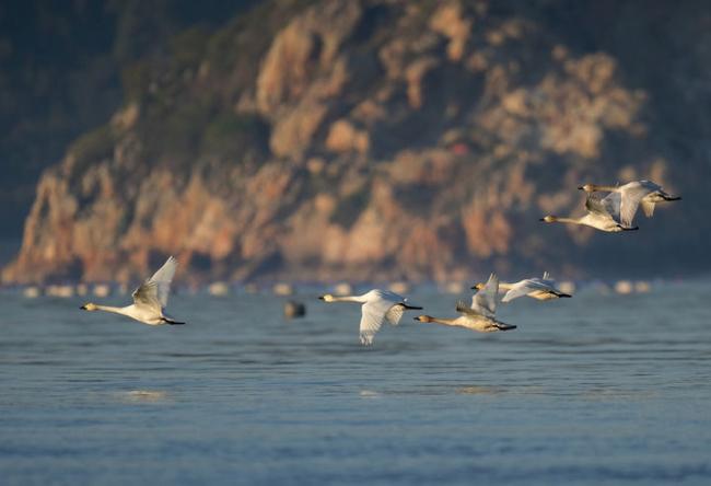 一群天鹅飞过闽江河口湿地上空(2023年1月31日摄)。新华社记者魏培全摄