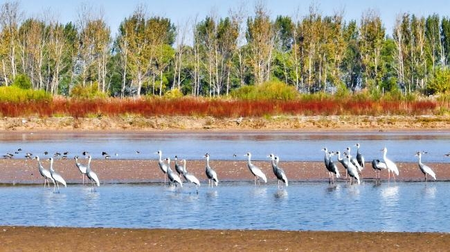 在山东黄河三角洲国家级自然保护区拍摄的白枕鹤(2022年10月18日摄)。新华社发(杨斌摄)