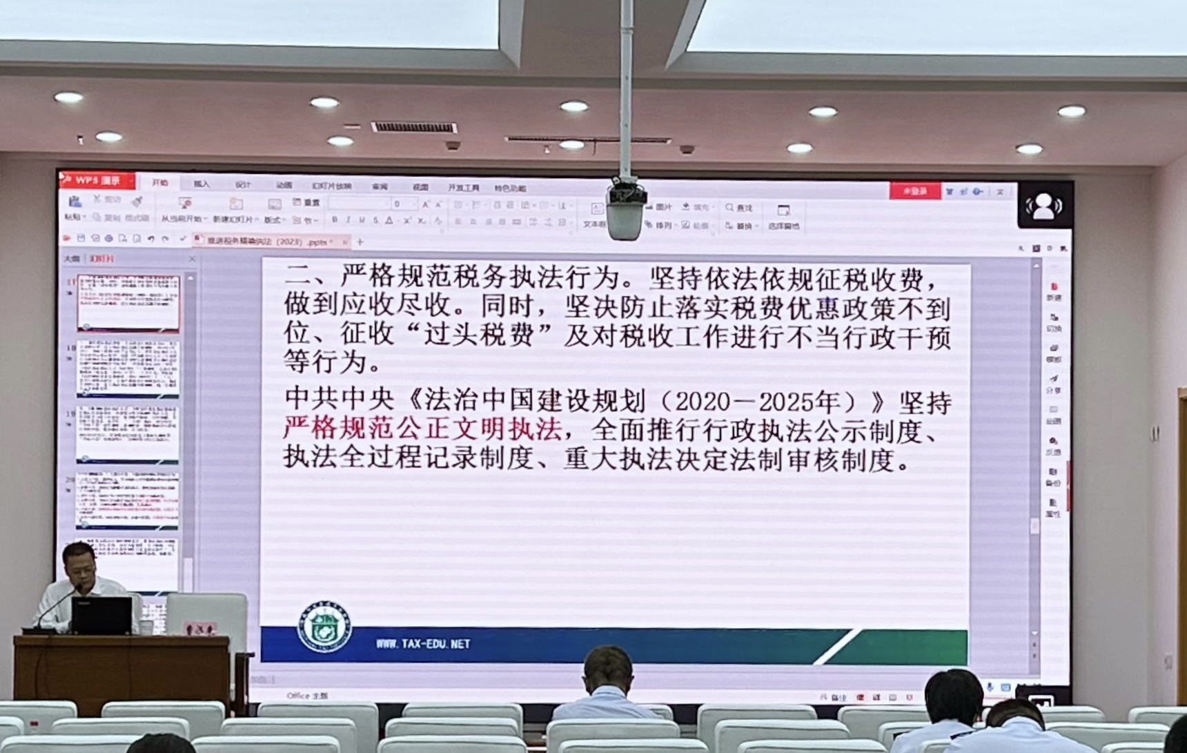 此次培训无论从师资水平、培训学员规模还是领导干部占比等方面都突破以往的法制培训,取得了良好的培训效果。参训学员一致表示,通过学习开拓了视野,提升了对习近平法治思想的深入理解和认识,要以此次培训为契机,不断提升运用法治思维和法治方式解决工作问题的能力,在今后的工作中做到尊法学法守法用法,以自身过硬的法治观念和法治素养维护税法的权威,依法依规保障税收职能作用有效发挥。