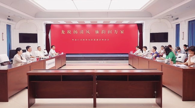各级税务部门深入开展纪法教育宣传月活动。图为:国家税务总局黑龙江省税务局召开“龙税扬清风 廉韵润万家”干部家属廉洁座谈会。 陆洋 王钊 摄
