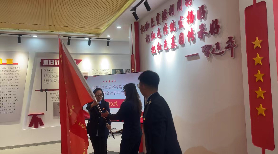 致辞完毕,党委书记、局长林天文向青年先锋队队长刘明琦授旗。随后,青年先锋队队员代表胡嘉薪作表态发言,他代表全体先锋队队员郑重承诺,以后将积极参与各项活动,倾听人民群众需求,帮助其及时解决急难愁盼,用优异成绩回馈组织信任。队员们一致表示,将不断强化担当意识,提升能力本领,将责任感转化为行动力,努力成为德才兼备、品学兼优的优秀青年干部,为广大纳税人缴费人提供更加专业、高效的服务,为山城税收工作高质量发展贡献青春力量。