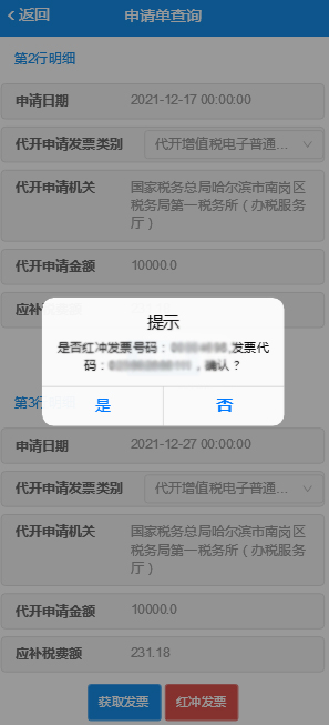 红冲发票审批通过后通过查询功能查询到红字发票并获取发票文件,如下图: