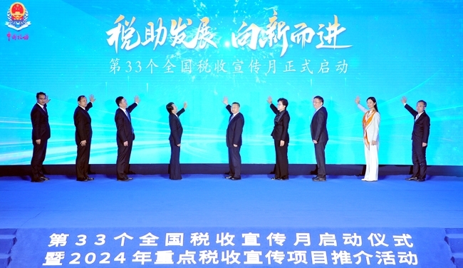 向新而进”为主题的第33个全国税收宣传月正式启动。 3月29日上午,国家税务总局二楼多功能厅气氛热烈,现场不时传来阵阵掌声。第33个全国税收宣传月启动仪式暨2024年重点税收宣传项目推介活动在这里举行。“税眼看发展”“税助‘新质生产力’”“大市场税活力”“跟着文物学税法”……随着14个重点税收宣传项目逐一精彩推出,以“税助发展 向新而进”为主题的第33个全国税收宣传月正式启动。